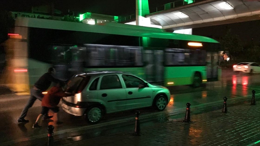 Sağanak yağıştan korunmak için karton kullananlar ve aracı bozulanlar kameralara yansıdı.