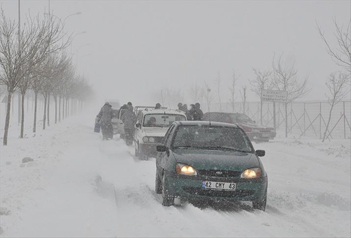 Kar yağışı yurt genelinde etkisini sürdürmeye devam ediyor. Kar yağışı ve tipi nedeniyle Konya'yı Ankara, Adana, Isparta, Antalya, Aksaray ve Ereğli'ye bağlayan karayollarında ulaşım durdu. Yoluna devam edemeyen araçlar, yetkililerce dinlenme tesislerine yönlendiriliyor.