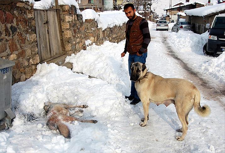 Serbest bıraktığı köpeğinin, kulübesinden hızla uzaklaştığını anlatan Battal, köpeğinin bir süre sonra ağzı kan içinde eve döndüğünü belirterek, ''Kangal köpeğimi takip ettiğimde, bir kurdun başına geldik. Kalabalık kurt sürüsü olduğu söyleniyor ama Kangal köpeğim birini etkisiz hale getirmiş'' dedi.
