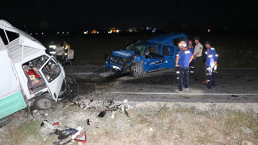 Kütahya'da devriye jandarma timini taşıyan araç ile kamyonetin çarpışması sonucu bir asker şehit oldu, 3'ü asker 7 kişi yaralandı.