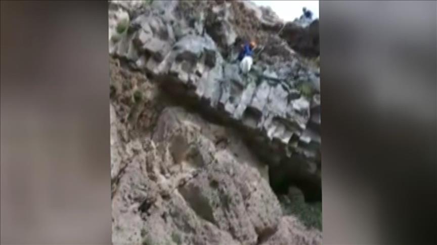 Ağrı'nın Doğubayazıt ilçesine bağlı Esnemez köyü kırsalında çoban Aydın Çıkmaz'ın otlattığı sürüdeki 4 koyun düştükleri bir yamaçta mahsur kaldı.
