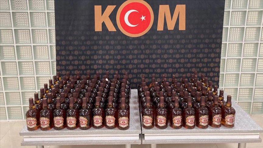 Otomobilde yapılan aramada, 175 litre kaçak viski ele geçirildi.