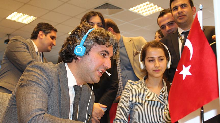 Personelinin bir bölümü engelli olan ve gelen tüm çağrılara uzmanlar tarafından doğrudan cevap verilen merkezde bilgisayar başına oturan Demirci, bir vatandaştan gelen çağrıyı yanıtlayarak yardımcı oldu.