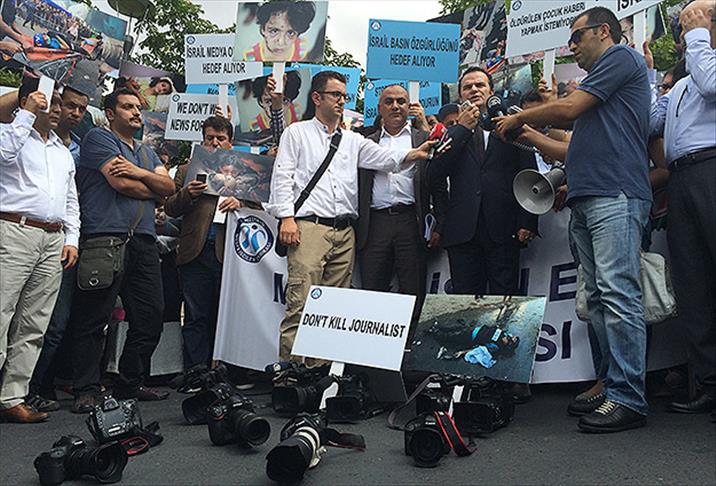 Öztürk, Medya-İş tarafından İsrail'in Gazze'ye yönelik saldırılarını protesto için bu ülkenin büyükelçilik konutu önünde düzenlenen protesto eylemine katıldı.