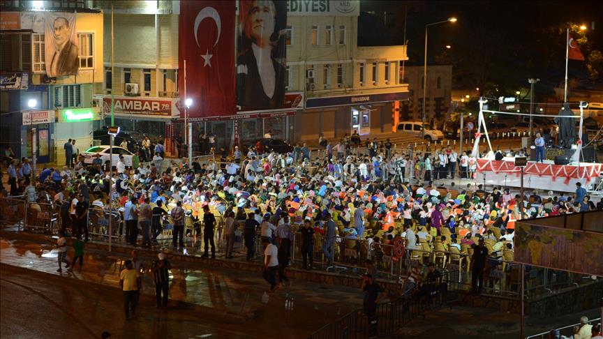 Valilik ve belediyenin çağrısı üzerine ellerinde Türk bayraklarıyla Hacı Cümbüş Camisi önünde toplanan vatandaşlar, mehteran eşliğinde Cumhuriyet Meydanı'na kadar yürüdü.