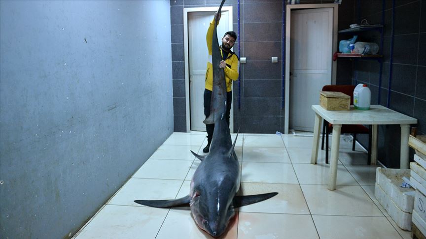Akdeniz'de havaların ısınmasıyla birlikte köpek balıklarının görülmeye başladığını aktaran Polat, kentte balıkçılar tarafından bu hafta yakalanan 3'üncü köpek balığı olduğunu vurguladı.