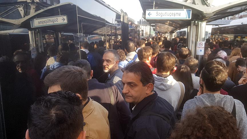 Arıza nedeniyle durağın iki yönünde de metrobüs kuyruğu oluşurken, vatandaşlar araçlardan inerek yürümek zorunda kaldı. Bazı vatandaşların da demir korkulukları aşarak merdivenlere ulaşmaya çalıştığı görüldü.
