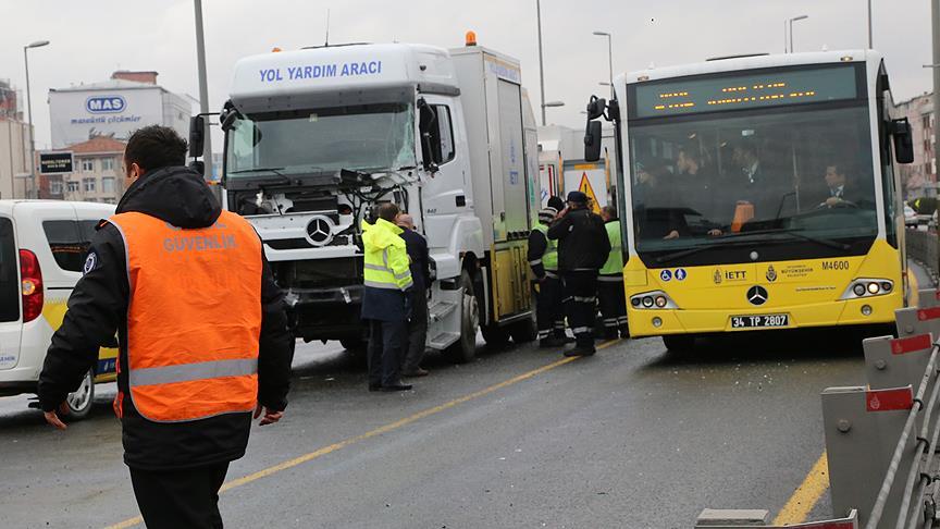 Alınan bilgiye göre, Avcılar-Söğütlüçeşme istikametinde seyreden metrobüs, Çağlayan durağı yakınında henüz bilinmeyen nedenle ters yönde seyreden İETT'ye ait yol yardım aracıyla çarpıştı.