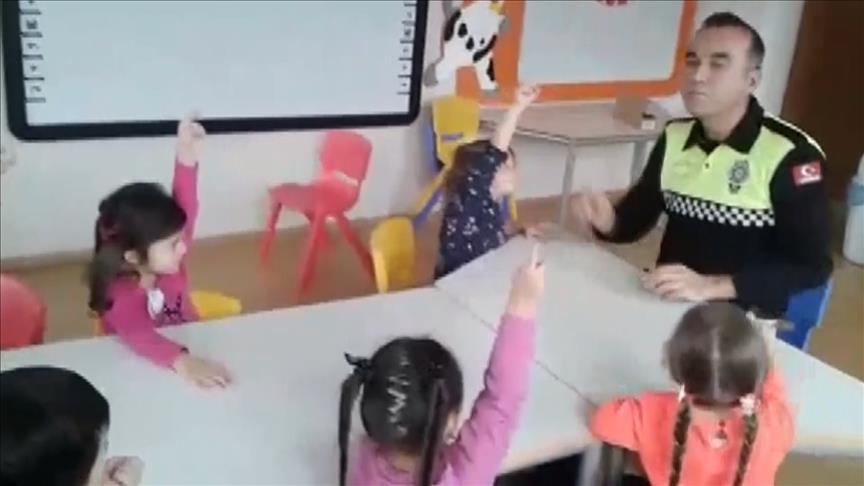 Kentte görev yapan polis memuru Murat Ünal, İl Emniyet Müdürlüğü ve İl Milli Eğitim Müdürlüğü'nün iş birliğiyle düzenlenen, "Çocuklar İçin Trafik Eğitimi Projesi" kapsamında okullarda eğitim veriyor.