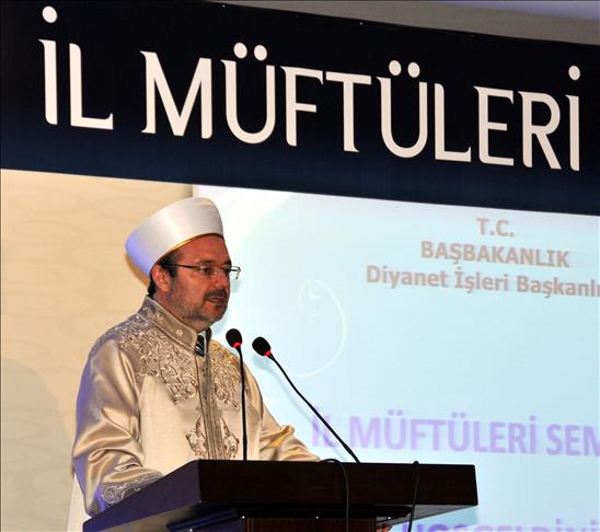 ''Diyanet İşleri Başkanlığı, Türkiye'nin belli başlı sorunları karşısında dinin alanını daraltma ya da abartılı bir şekilde genişletme anlayışından uzak durarak dinin kendi tabiatına denk bir duyarlılık içinde milletin huzur ve saadetinin teminatı olan maneviyata ulaştırılması konusundaki azim ve kararlılığını sürdürüyor. Bu bağlamda dini bir takım yorum, adet ve geleneklerle özdeşleştiren, hurafeler zemininde insanımızın maneviyatını hayattan koparan her türlü olgu karşısında teşkilatımız gereken irşad görevinin gerçekleştirilmesi öncülüğünü devam ettirecektir. Bugün başta Suriye olmak üzere coğrafyamızdaki kimi sorunlu bölgelerde mezhep olgusu üzerinden Müslümanları bölüp parçalamaya yönelik girişimler karşısında herkesin uyanık ve basiretli olması gerekir. Hutbe ve vaazlar birer irşad vasıtası olarak çok büyük önem taşıdığı açıktır. Bundan dolayı özensiz, gündemden kopuk ve sıradan söz akışlarıyla örülmüş bir hutbe ve vaaz içeriğiyle bu görevin hakkıyla yerine getirilemeyeceği malumdur. Hutbe ve vaaz metinlerinin iyileştirilmesi konusunda gereken bütün tedbirler özenle alınmalıdır''