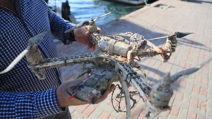 Güllük Mahallesi'nde balıkçılıkla geçimini sağlayan Ali Billur, kendisine ait tekneyle denize açıldı. Bir süre sonra ağlarını toplamak isteyen Billur, ağda balıkların arasında metal bir cisim buldu. Billur, pervanelerinden, cismin drone olarak tabir edilen insansız hava aracı olduğunu anladı. Balıkçı, daha sonra cihazı sergilenmek üzere bir işletmeye verdi.