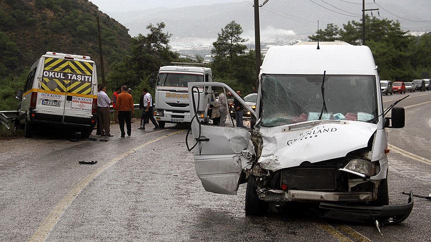 Fethiye ilçesinde öğrenci ile otel çalışanlarını taşıyan minibüslerin çarpıştığı kazada, 6'sı öğrenci, 13 kişi yaralandı.
