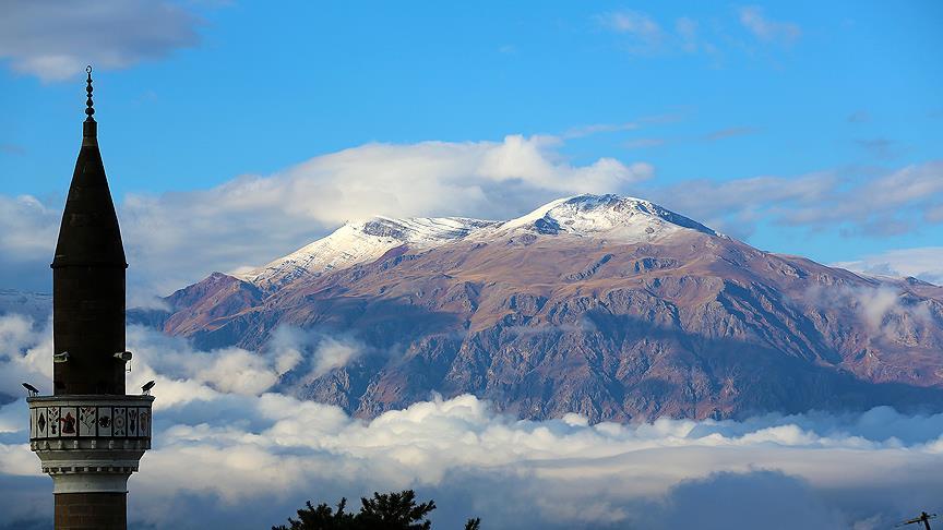 Erzincan'ın Tunceli sınırında yer alan 3 bin 463 metre yüksekliğindeki Munzur Dağı'nın zirvesi yağan karla beyaza büründü.