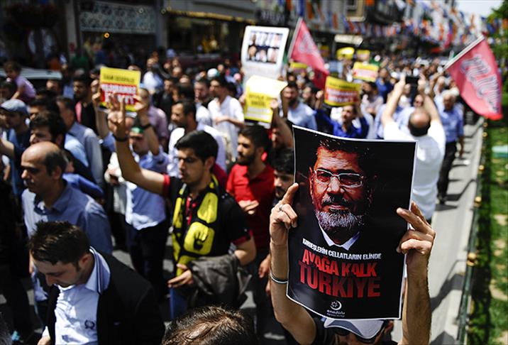 Fatih Camisi'nde toplanan grup, "Darbeciler Mursi'yi yargılayamaz" yazılı pankart açarak, "Katil Sisi, seninleyiz Mursi", "İslami hareket engellenemez" ve "İdam sehpası, yıldıramaz İhvanı" şeklinde slogan attı.