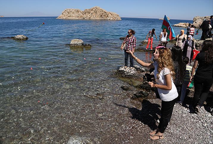 Çeşitli derneklere üye bir grup, Akdamar Adası'nda Ermeni çetelerince katledilen 50 Müslüman kadın ve Van halkı için gıyabi cenaze namazı kılıp, göle karanfil bıraktı.