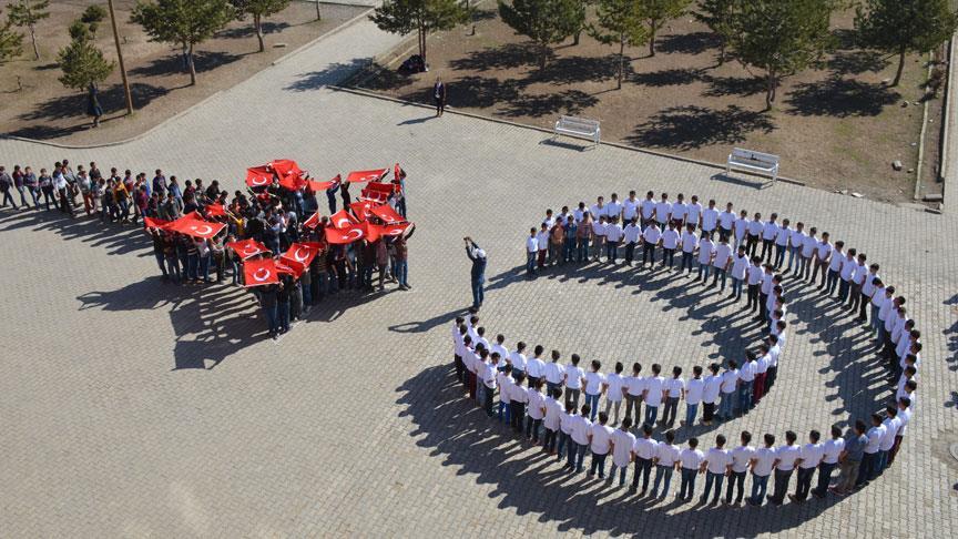 Muş'un Malazgirt ilçesinde ortaokul öğrencileri, ay yıldız koreografisi oluşturarak Zeytin Dalı Harekatı'na destek verdi.