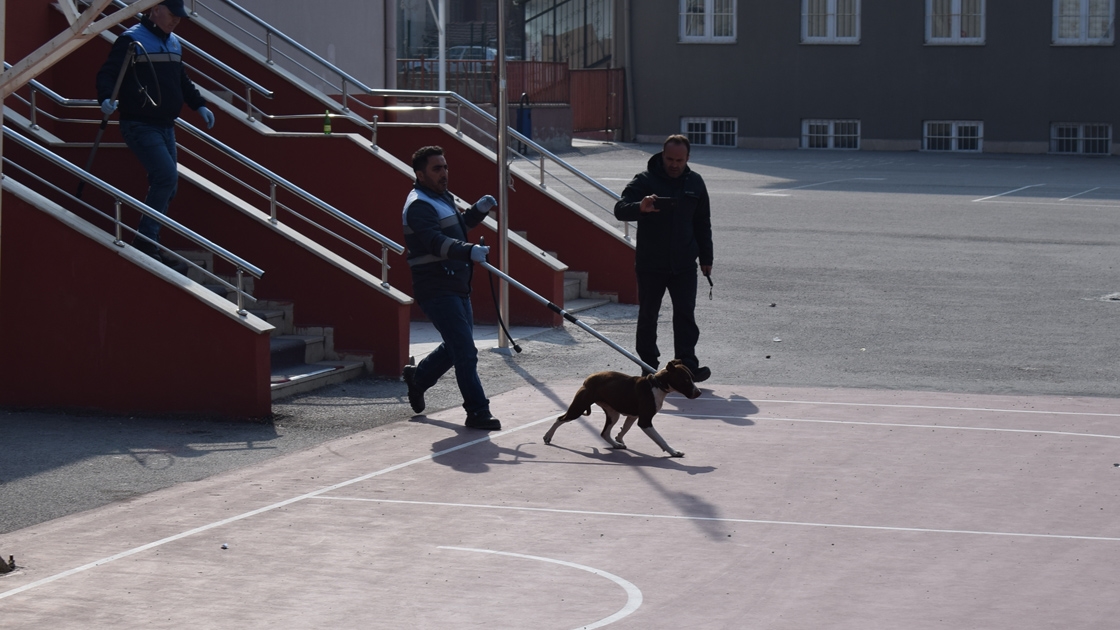 İhbar üzerine okula polis, belediye ve sağlık görevlileri sevk edildi. Spor salonundaki köpek, belediye ekipleri tarafından yakalanıp barınağa götürüldü.