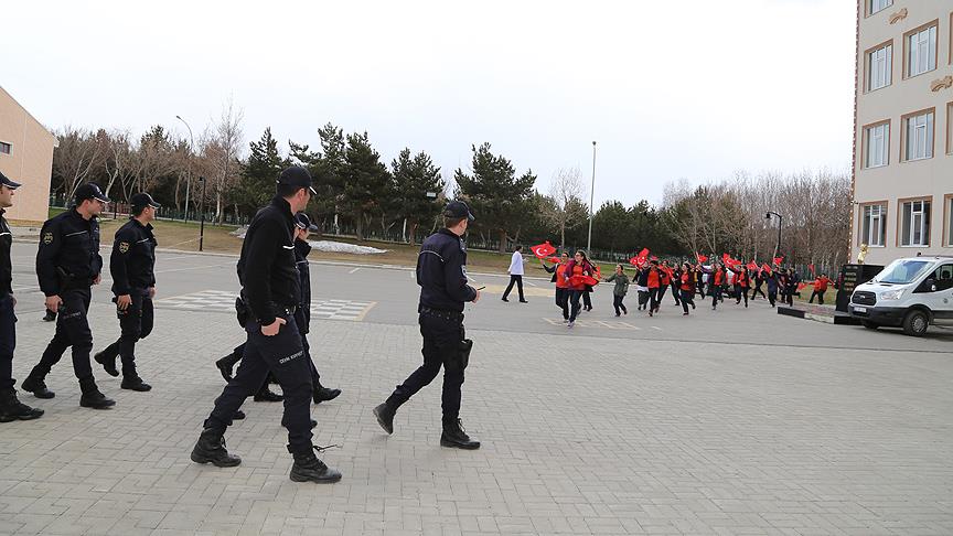 Erzurum'da, Atatürk Üniversitesine (AÜ) bağlı Süheyla Sıtkı Alp Özel Ortaokulu öğrencileri, olay çıktığı ihbarında bulunarak okula çağırdıkları polis ekiplerini çiçek ve bayraklarla karşılayıp sürpriz yaptı.