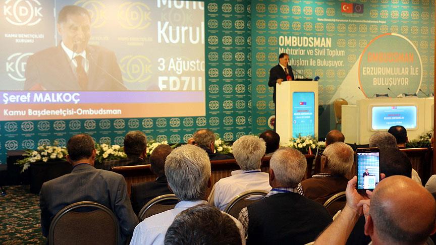 Kamu Denetçiliği Kurumunun (KDK), "Ombudsman Halkla Buluşuyor" etkinlikleri çerçevesinde Erzurum'da muhtarlar ve sivil toplum kuruluşu temsilcileriyle bir araya gelen Başdenetçi Malkoç, KDK'nın 4 yıl önce kurulmasına rağmen ülkede güzel işler başardığını belirtti.