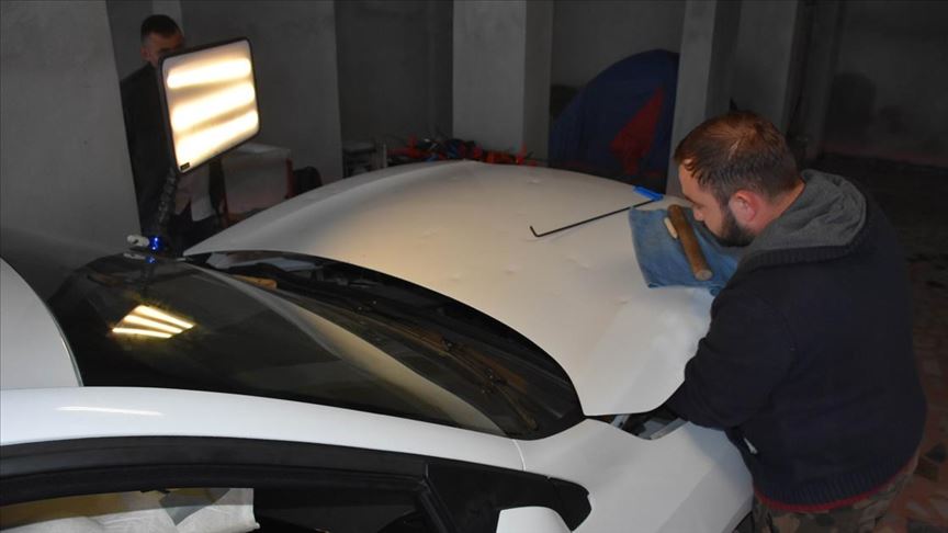 Vatandaşların, araçlarını yaptırmak üzere kendilerine başvurduğunu anlatan Çokiyi, "O yüzden biz de Fatsa'dan buraya vatandaşlarımıza hizmet etmek için geldik. Şu anda araçların dolu hasarlarını gideriyoruz. Hasar gören bir aracı yaklaşık 2,5 günde tamir ederek eski haline getiriyoruz." diye konuştu.