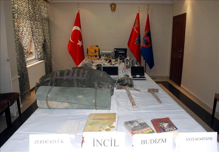 Aramalarda, 2 adet uzaktan kumandalı patlayıcı düzeneği, bin 400 metre elektrik kablosu, 22 adet piknik tüpü, 1 adet jeneratör, 1 adet gaz lambası, 20 çift ayakkabı, 250 litre benzin ile çok miktarda gıda ve giyim malzemesi, İncil, Zerdüştlük ile ilgili kitaplar ve örgütsel doküman bulundu.