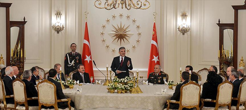 İçişleri Bakanlığı'nın Valiler Toplantısı dolayısıyla Ankara'da bulunan 81 ilin valisine Çankaya Köşkü'nde öğle yemeği veren Cumhurbaşkanı Abdullah Gül, valileri ve diğer konukları, İçişleri Bakanı Muammer Güler ile Büyük Resepsiyon Salonu'nun girişinde karşıladı.