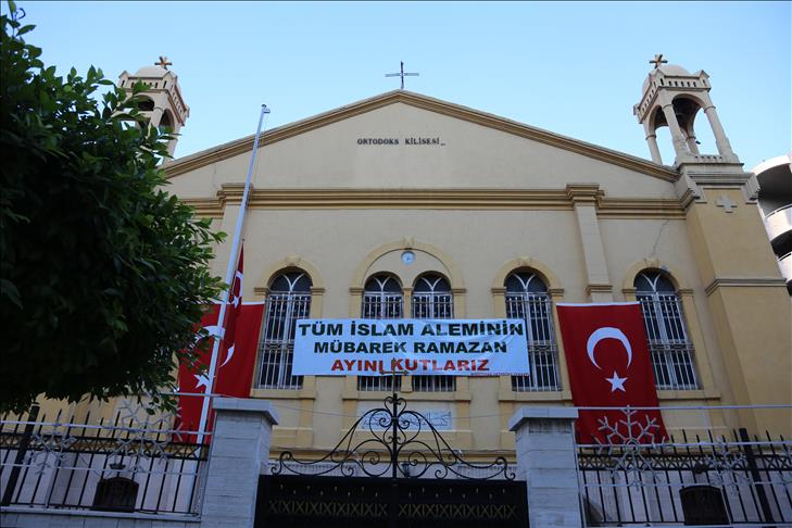 Kilise duvarında ise "Tüm İslam aleminin mübarek ramazan ayını kutlarız. İskenderun Ortodoks Cemaati" yazılı pankartın da asıldığı dikkatleri çekti.
