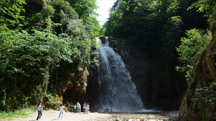 Gümüşhane'de uzun ladin ve köknar ağaçlarının yer aldığı Örümcek Ormanları'ndaki Çağlayandibi Şelalesi Tabiat Parkı, bayram tatilinde ziyaretçilerini bekliyor.