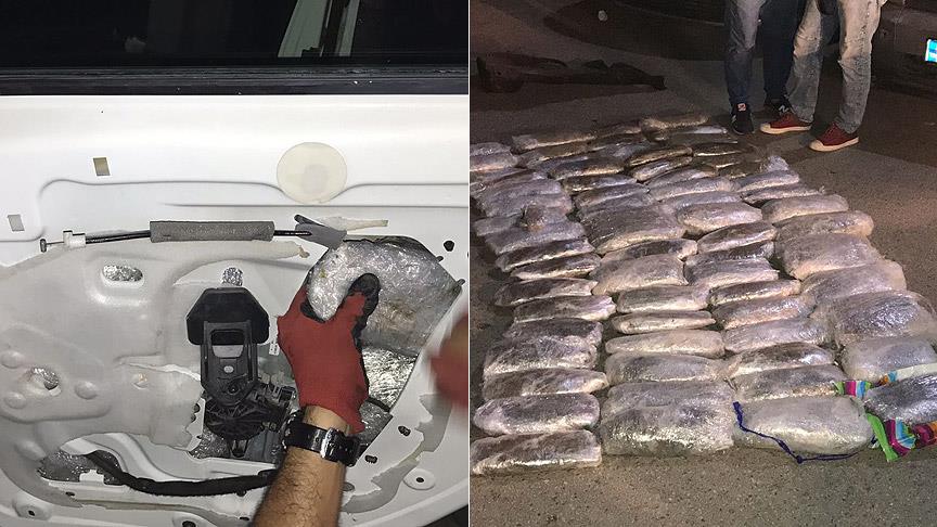 Otomobilde narkotik dedektör köpekler yardımıyla yapılan aramada aracın motor kaputunun yanı sıra kapıları, lambaları, koltukları, bagajı ve ses sistemlerinin içlerine gizlenmiş 72 paket halinde 39 kilo 660 gram kubar esrar ele geçirildi.
