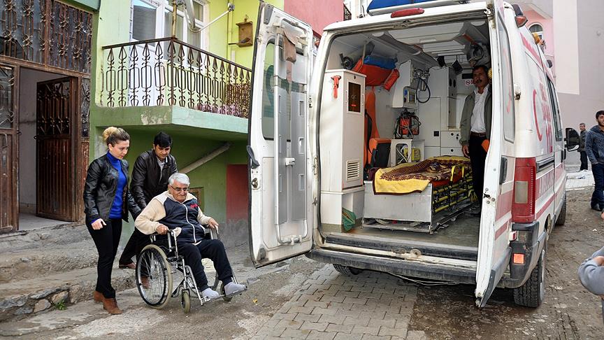 Merzan Mahallesi'nde yaşayan felçli Ahya Dayan (65) ve böbrek hastası eşi Hatun Dayan (60), Evde Sağlık Hizmeti Birimi görevlilerince ambulansla oy kullanacakları Türk Telekom Sosyal Bilimler Lisesine götürüldü.