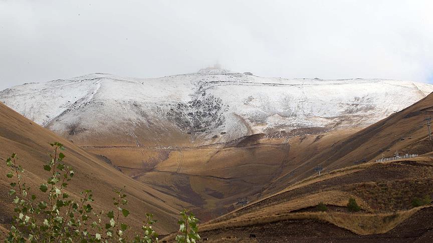 Erzurum'da, Türkiye'nin önemli kış turizm merkezlerinden Palandöken Dağı'na mevsimin ilk karı yağdı.