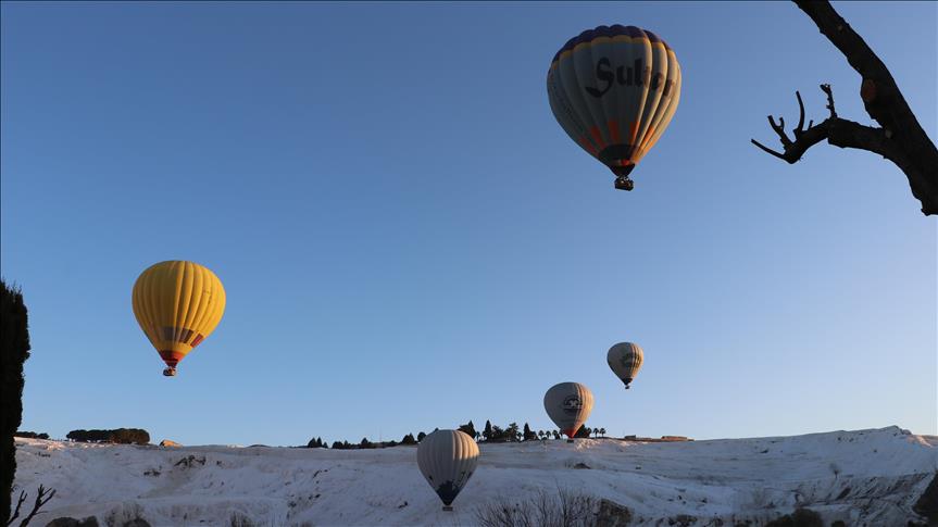 Beyaz travertenleri, sıcak su kaynakları ve antik kentleriyle tanınan "beyaz cennet" Pamukkale'ye gelen binlerce yerli ve yabancı turist, burada balon turizmine rağbet gösteriyor. Turistlerin ilgisi ile 5 yıl önce başlayan balon turlarında 2 olan balon sayısı 14'e çıktı.