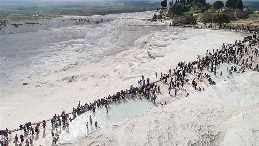 2017'de 1 milyon 524 bin kişinin giriş yaptığı Pamukkale, 2018'de 2 milyon 128 bin yerli ve yabancı turisti ağırladı. Pamukkale'yi bu yılın haziran-ağustos döneminde ise yaklaşık 1 milyon 100 bin turist ziyaret etti. Yılbaşından bu yana bölgeyi ziyaret eden turist sayısı, 1 milyon 800 bine ulaştı.