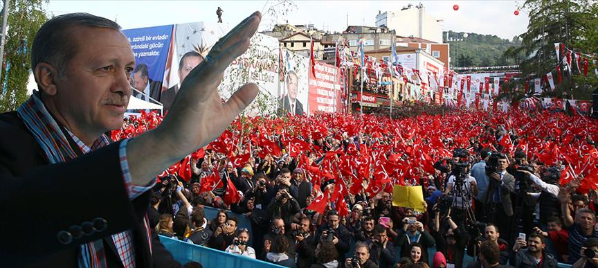 Erdoğan, "Bu seçim yeni Türkiye'nin inşasını isteyenlerle eski Türkiye'yi hortlatmak isteyenlerin seçimine dönüştü. Ben 'yeni anayasa, başkanlık sistemi' dedikçe birileri giderek daha hırçın şekilde eski Türkiye'nin alışkanlıklarına sarılıyor" şeklinde konuştu.