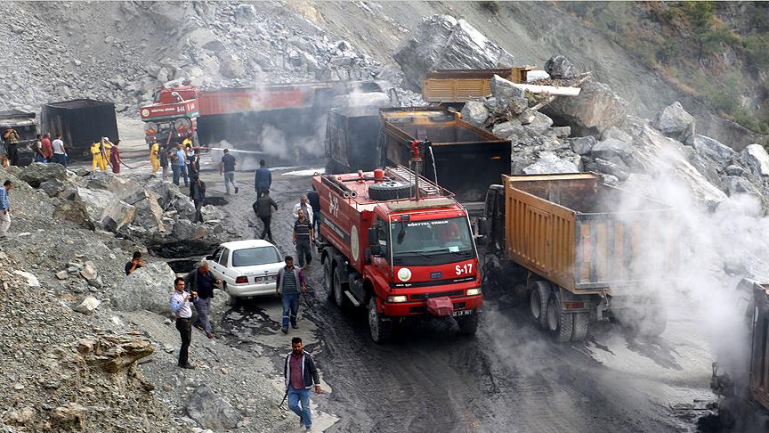 Valiliğin internet sitesinde yer verilen açıklamada, saat 06.30 sıralarında Karakese Mahallesi kırsalında bir grup bölücü terör örgütü mensubunun ocaktan taş çeken kamyonları durdurarak şoförlerine propaganda yaptıkları, ardından araçları ateşe verdiklerinin tespit edildiği bildirildi.