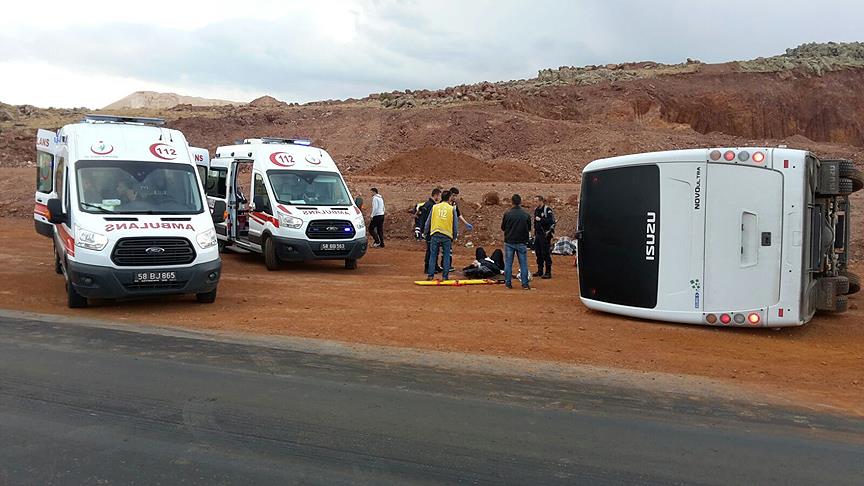 Sivas'ta görevden dönen polisleri taşıyan midibüsün devrilmesi sonucu 7 polis yaralandı.