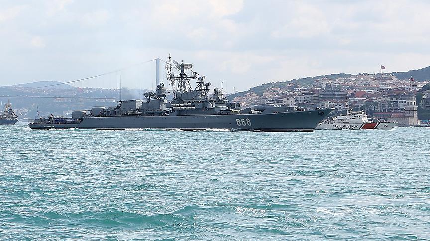 Karadeniz'den gelen Rus donanmasına ait 868 borda numaralı savaş gemisi, Sarayburnu önünden Marmara Denizi'ne girdi.