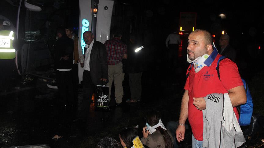 Kazada sürücünün yanı sıra ilk belirlemelere göre 20'nin üzerinde yolcu yaralandı.