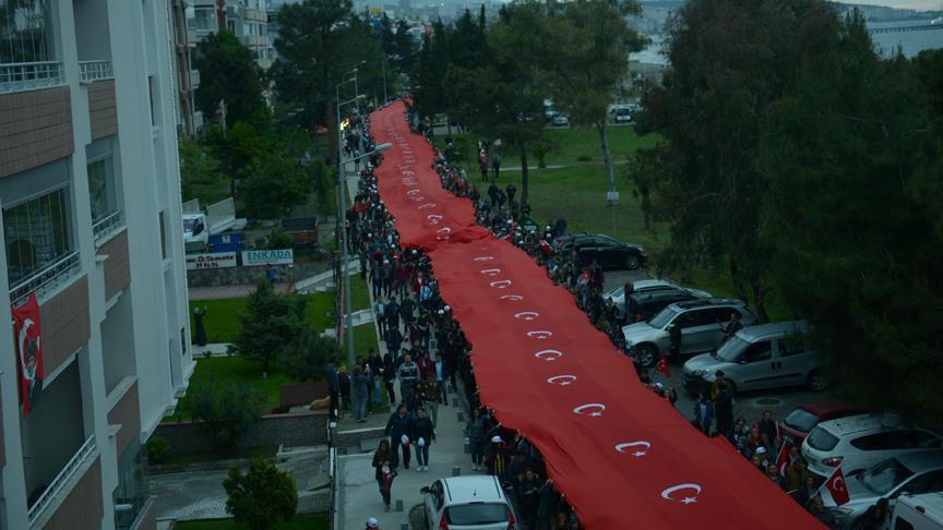 Atakum ilçesindeki Çobanlı İskelesi'nden Gençlik ve Spor Bakanı Akif Çağatay Kılıç'ın katılımıyla başlayan "Gençlik ve Bayrak Yürüyüşü" boyunca öğrenciler ve vatandaşlar çeşitli marşları seslendirdi. Çevrede bulunan vatandaşlar da ellerindeki Türk bayraklarını sallayarak, yürüyüşü yapanlara destek verdi.