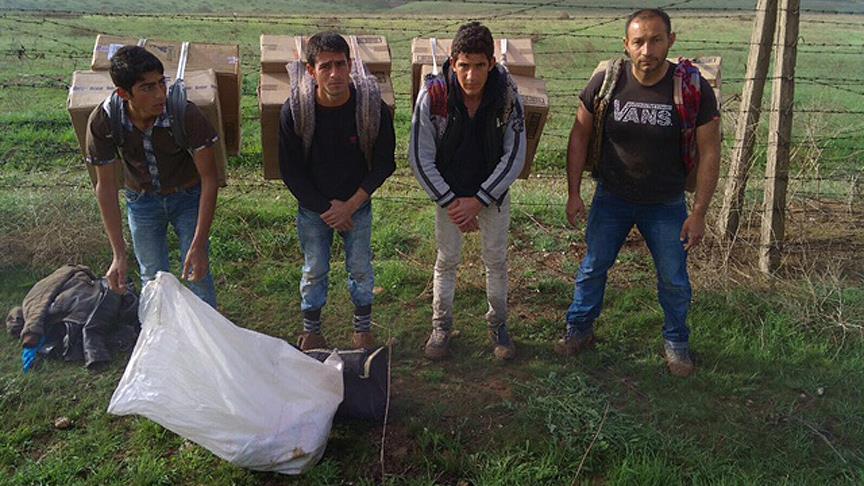 Çiçekalan mevkisinde sınırı geçmeye çalışan Ahmet Ş, Halil Ş. ve Ali Ş. ile Nebi B'yi yakalayan ekipler, bölgede yaptıkları araştırmada 10 kilogram patlayıcı buldu.