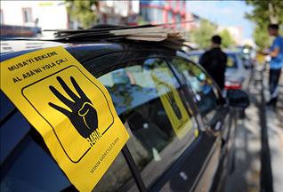 Bu arada bazı vatandaşların, üzerinde "Rabia" işareti bulunan tişört giydikleri görüldü.