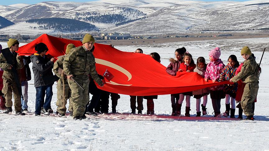Sarıkamış Harekatı'nın 101. yıl dönümü anma etkinlikleri kapsamında Fevzi Çakmak İlkokulu öğrencileri, öğretmenleri eşliğinde Allahuekber Dağı Şehitlik Anıtı'na yürüyüş gerçekleştirdi. Asker üniforması giyenlerin de olduğu 30 öğrenci, anıt önünde düzenlenen törende, 101 yıl önce Allahuekber Dağları'nda şehit düşen askerler için dua etti ve şiirler okudu.