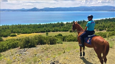 Balıkesir'in Ayvalık ilçesinin dünyaca ünlü Sarımsaklı Plajları'nda Jandarma Genel Komutanlığı tarafından konuşlandırılan atlı jandarma timi göreve başladı.