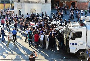 Bu sırada metro çıkışı önündeki yaklaşık 40 kişilik grubunun A.Ş'nin üzerine gelerek taş atmaya başladığı bildirilen iddianamede, göstericiye tekme vurmadan önce tabancasını çeken sanık polisin taşlanınca tabancanın mekanizmasını çektiği, bu sırada namluyu yere doğru tuttuğu kaydedildi. A.Ş'nin, tabancasını omuz hizasından yukarıda tutarak havaya iki kez ateş ettiği, bu sırada geriye ve yana doğru çekildiği anlatılan iddianamede, sanığın arkasını göstericilere dönüp gitmek istediği sırada tabancayı tuttuğu elinin ve tabancanın bir an yere paralel hale geldiği, bu konumdayken tabancasını üçüncü kez ateşlediği bildirildi.