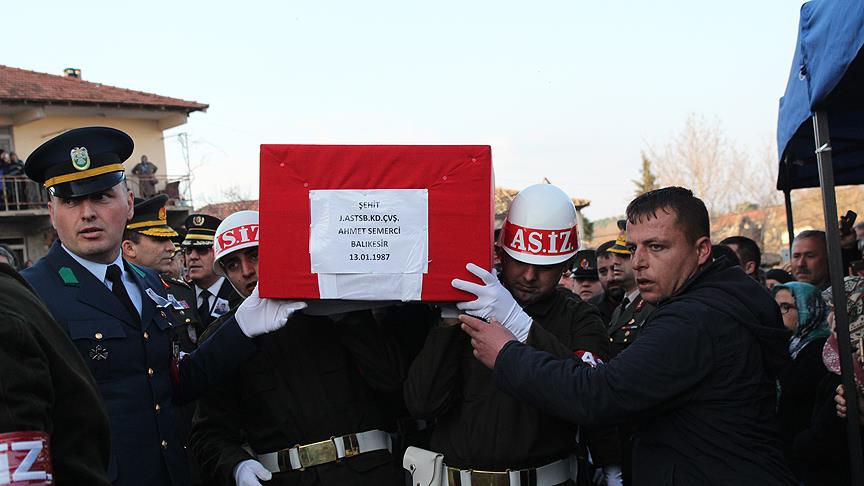 Şırnak'ın Cizre ilçesinde terör örgütü PKK mensuplarına yönelik operasyonda şehit olan Jandarma Astsubay Kıdemli Çavuş Ahmet Semerci, memleketi Balıkesir'in Sındırgı ilçesinde son yolculuğuna uğurlandı.