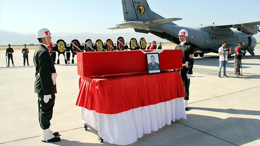 Elazığ Asker Hastanesi morgundan alınan şehidin Türk bayrağına sarılı naaşı, cenaze arabasıyla Elazığ Havalimanı'na getirildi. Meslektaşlarının omuzlarına alınan cenaze, tören alanında bulunan katafalka konuldu.