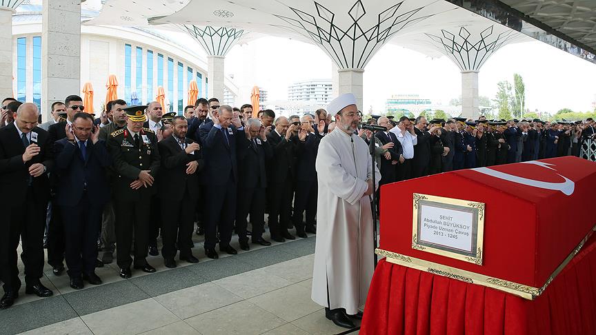 Şehidin cenaze namazını Diyanet İşleri Başkanı Mehmet Görmez kıldırdı. Namazın ardından şehitler kervanına bir yiğidi daha uğurladıklarını belirten Görmez, tüm şehitlere Allah'tan rahmet diledi.