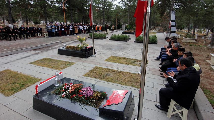 Batman'ın Kozluk ilçesinde Belediye Başkanı Veysi Işık'ın aracına yönelik terör saldırısında şehit olan 22 yaşındaki müzik öğretmeni Şenay Aybüke Yalçın'ın Çorum'un Osmancık ilçesindeki mezarı başında anma töreni düzenlendi.