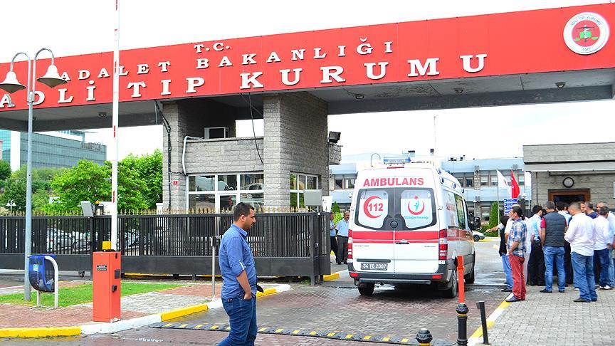 Terör saldırısında hayatını kaybeden şehit polisler Gökhan Topçu ve Kadir Cihan Karagözlü'nün cenazelerinin, Adli Tıp Kurumundaki işlemleri tamamlandı.
