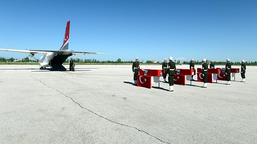 İl Müftü Yardımcısı Faruk Gürbüz'ün okuduğu dua sonrası şehitler Piyade Uzman Çavuş Gökhan Dündar (Kırşehir), Ulaştırma Uzman Çavuş Veli Demiryürek (Osmaniye), Piyade Sözleşmeli Er Bestami Güler (Hatay) ve Piyade Sözleşmeli Er Recep Alpmala'nın (Konya) cenazeleri, askeri uçakla memleketlerine uğurlandı.
